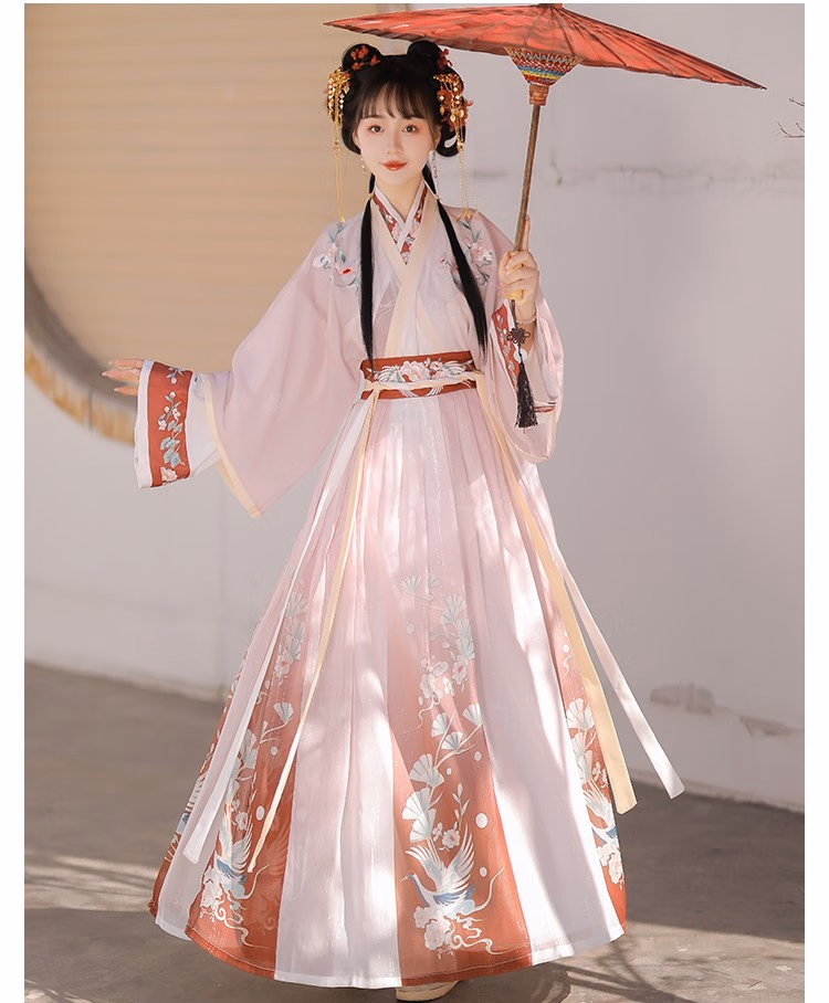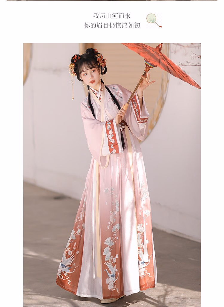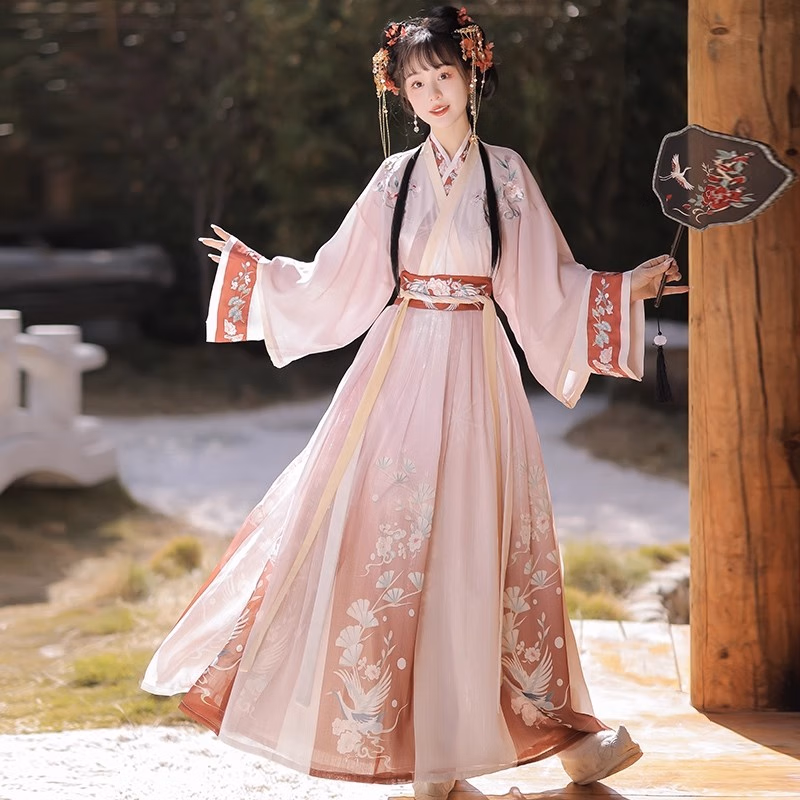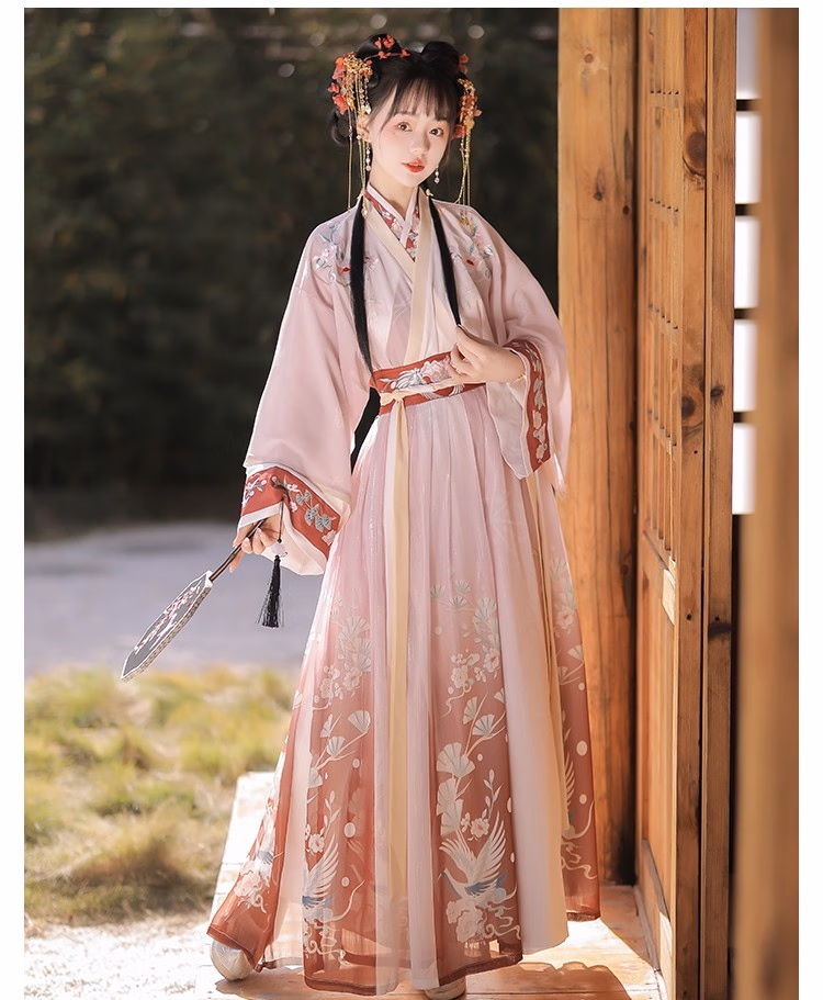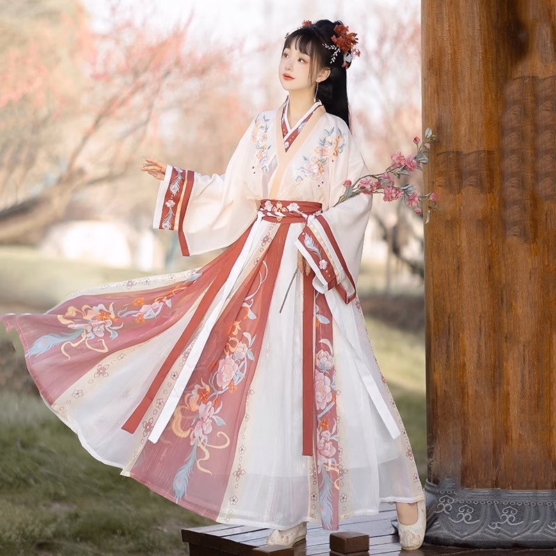 卡辑汉服女中国风仙气晋制刺绣交领齐腰襦裙古风成人学生 【红朝袖】