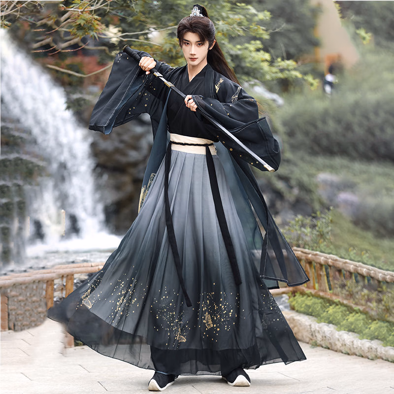 汉服男成人侠客古装交领齐腰襦裙书生魏晋风马面裙套装