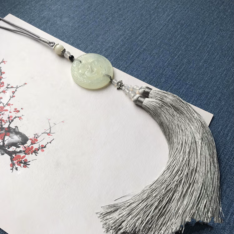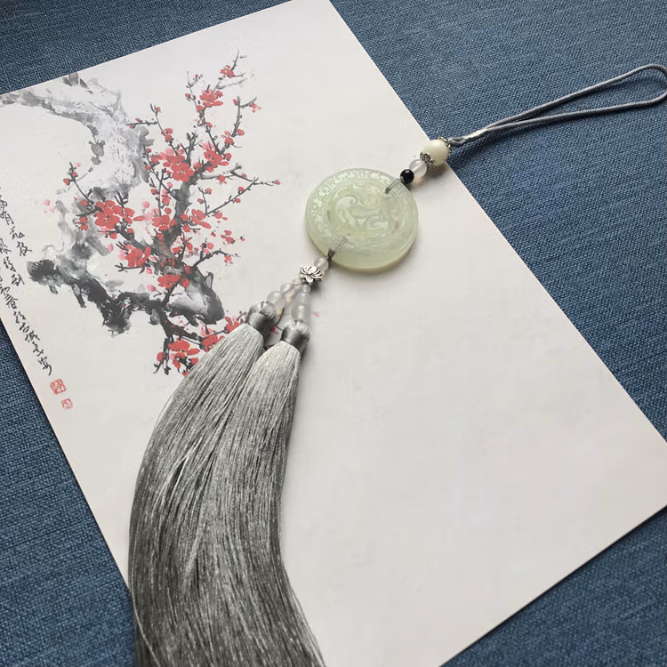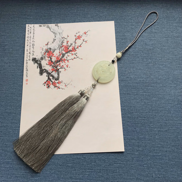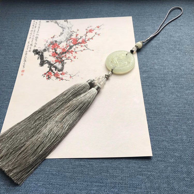 中国风古风玉佩岫玉仿古龙流苏挂件汉服禁歩腰佩古装压襟配饰 水墨色